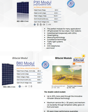 320W modellen är Bifacial och använder solljuset på ovan sidan kombinerat med reflekterat ljus på undersidan. Det blir då mer KWH ur en given ytan om det finns ljus bakom panelen som vi nu kan använda.