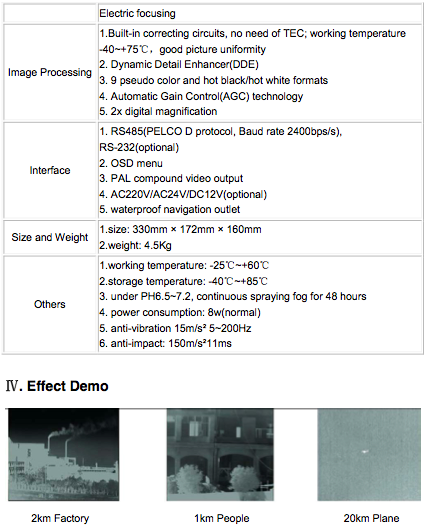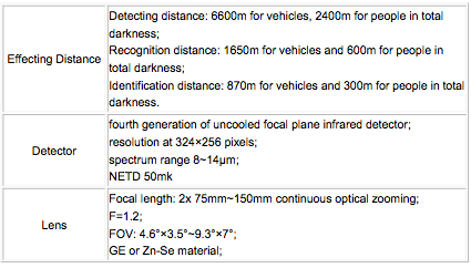- First develop continuous zooming infrared lens: 75~150mm continuous optical zooming, max 5x