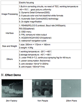 - Adopt the fourth generation of uncooled focal plane infrared detector, NETD at 50mk, easy to find objects