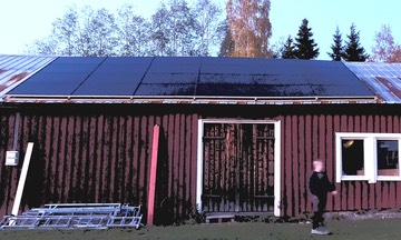 Detta är en lite udda installation på ett ladutak i pannplåt. Vi använde det integrerade montaget fölr tegeltak men lade dettan ovanpå plåttaket. Det blev lyckat och jobbet gick snabbt. Panelerna är 545W Peimar paneler.