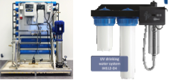* Desalination systems for getting drinkning water from salt ocen water. We offer Osmosis based systems with low and hiogh capacity up to 7000 liter / hour. They can be solar operated.